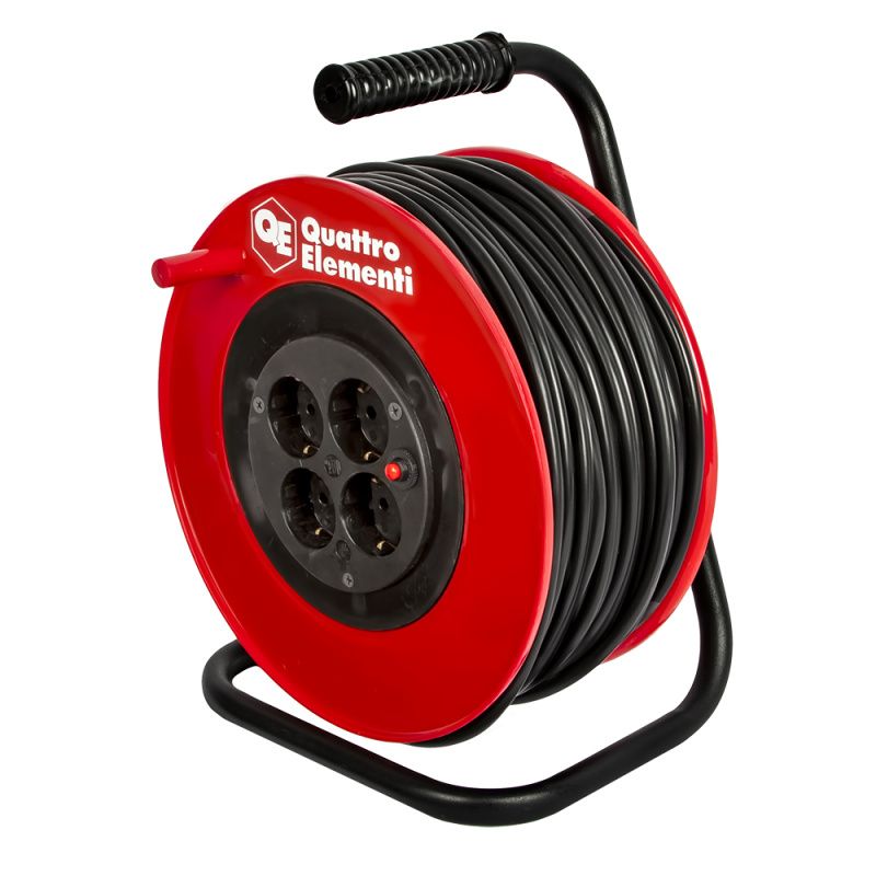 Удлинитель силовой QUATTRO ELEMENTI УХз16-004 - 60 м, провод ПВС 3х1,5 мм2, 4 роз. 16А 220В, автомат защиты, катушка пластик, 491-134