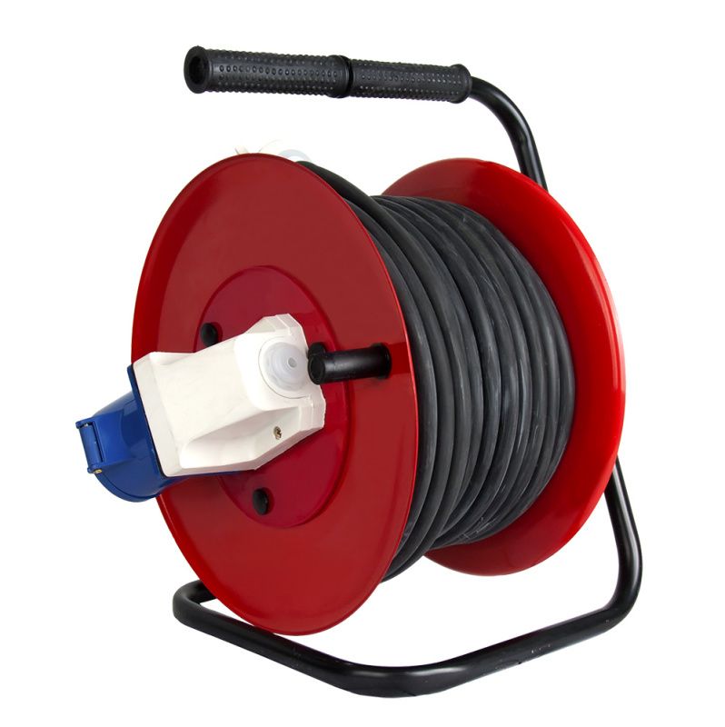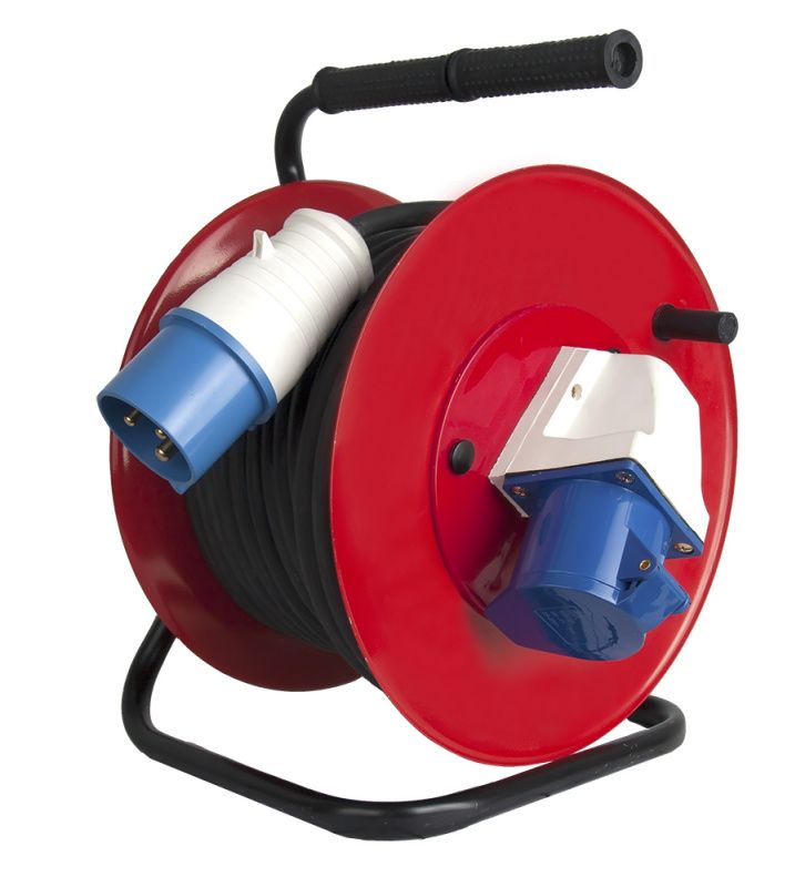 Удлинитель силовой QUATTRO ELEMENTI УПС32-220 - 30 м, провод КГ 3х4,0 мм2, 1 сил. роз. 32А 220В, катушка металл, 481-012