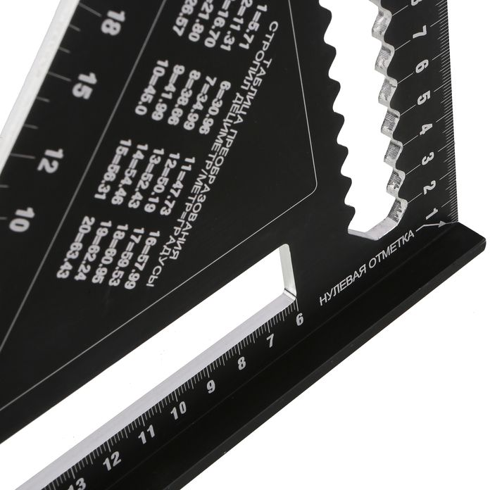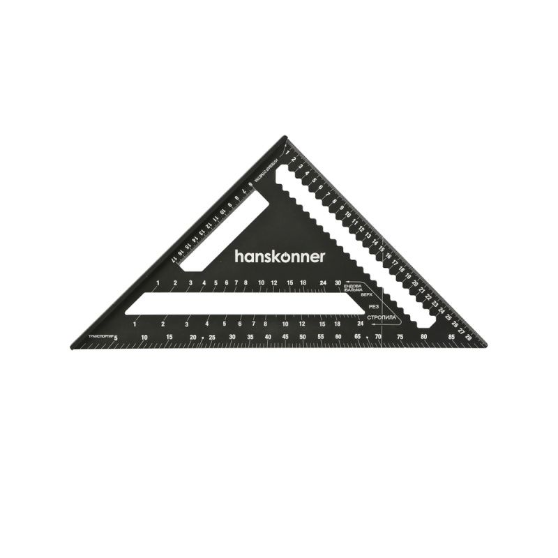 | Назначение | Для разметочных работ при установки кровли, а так же контроля перпендикулярности конструкций, как торцовочный угольник, транспортир, рейсмус, направляющая для пилы. |