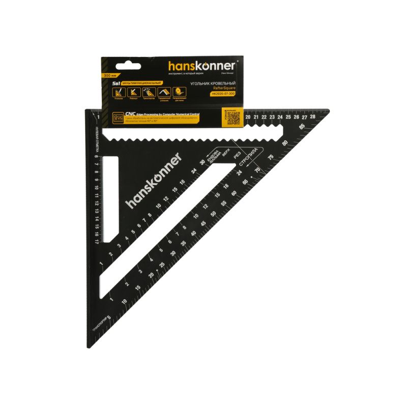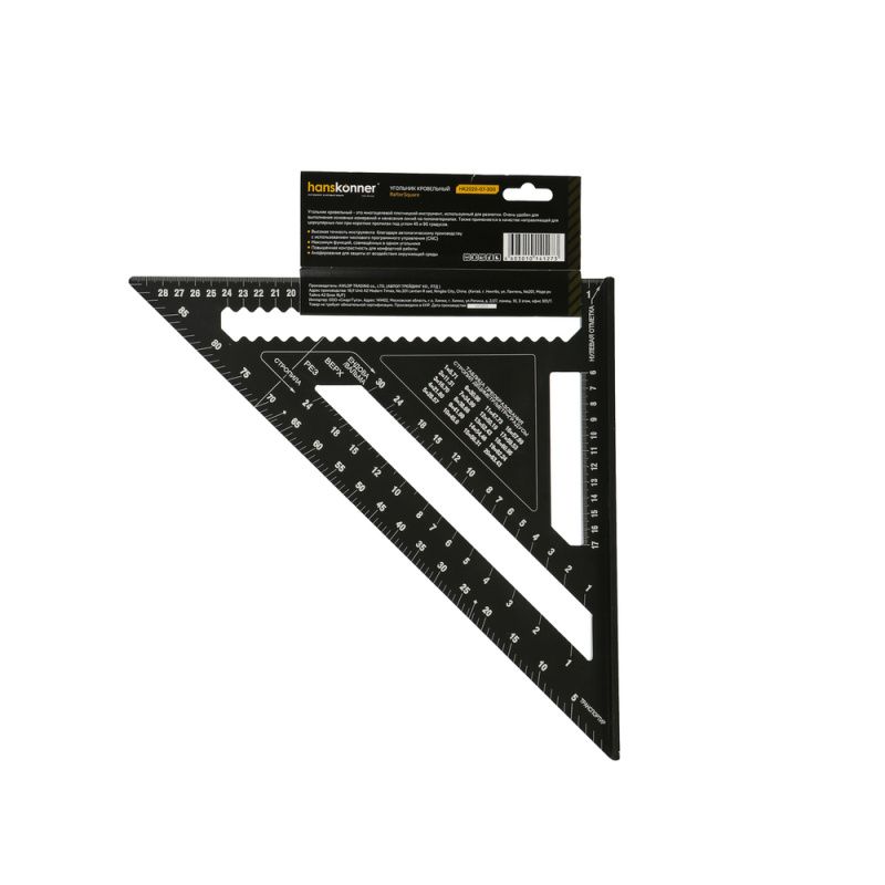 Угольник 300мм, алюминиевый сплав, чёрный анодированный корпус, белая шкала, hanskonner, HK2020-07-300