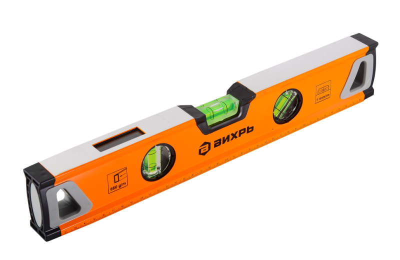 Уровень алюминиевый "Усиленный" 400 мм, магнит, 3 глазка (1 зеркальный), 2 комп.рукоятки Вихрь - измерительный инструмент при строительных, ремонтных и отделочных работах для поиска и исправления отклонения поверхностей. Корпус прочный и износостойкий, изготовлен из алюминия. Фрезерованная рабочая поверхность служит для уменьшения возможной погрешности при измерениях. Длина уровня 400 мм.Особенности: