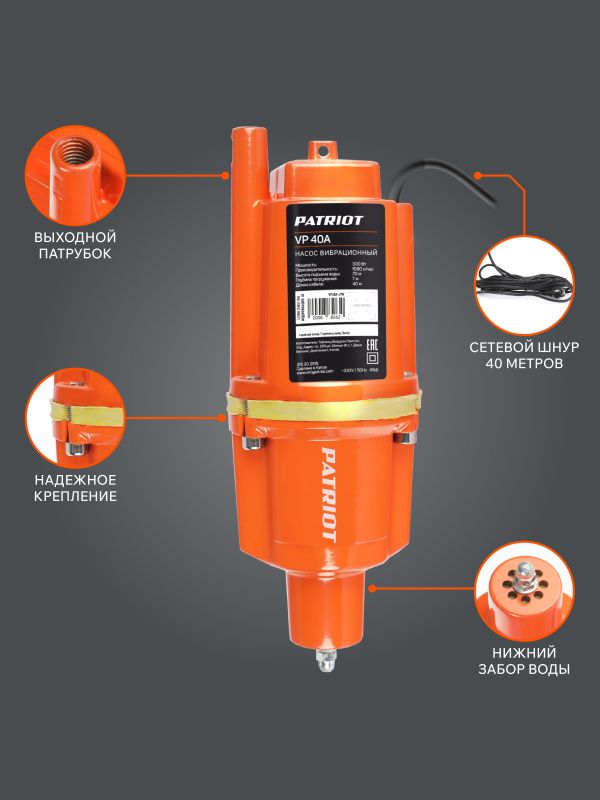| Комплектация* | Насос вибрационный; Хомут; Клапан; Инструкция |