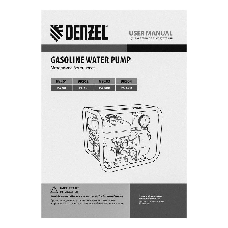 Перед началом эксплуатации мотопомпы Denzel PX-50H необходимо внимательно изучить инструкцию по применению.