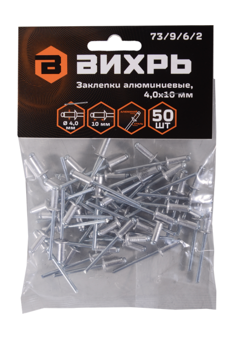 Заклёпки алюминиевые Вихрь 4,0х10 мм, 50 шт., 73/9/6/2