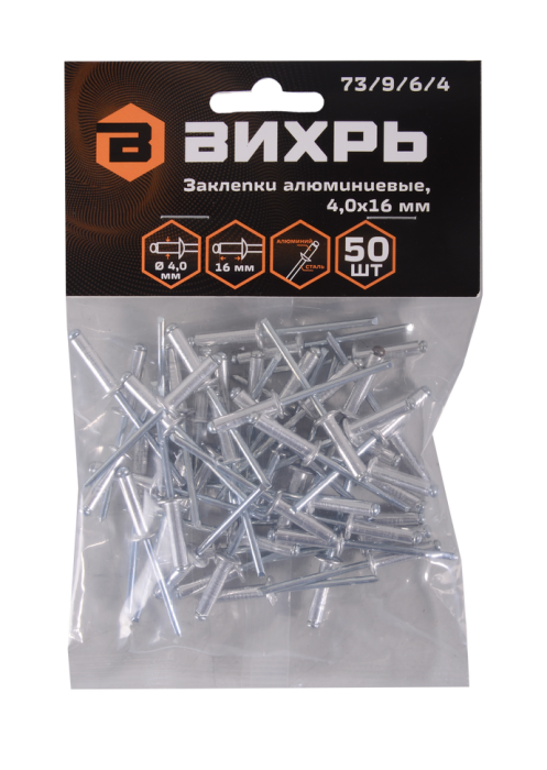 Заклёпки алюминиевые Вихрь 4,0х16 мм, 50 шт., 73/9/6/4